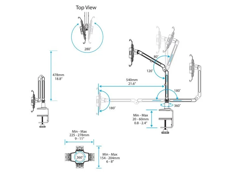 - Universal desk-mount tablet stand supports 9" to 11" tablets - Integrate your tablet seamlessly into your workspace - Lockable mount secures your tablet