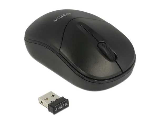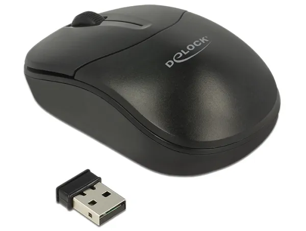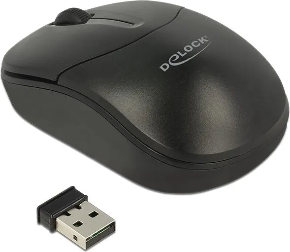 Delock - Mus - høyre- og venstrehåndet - optisk - 3 knapper - trådløs - 2.4 GHz - USB trådløs mottaker - svart - løsvekt