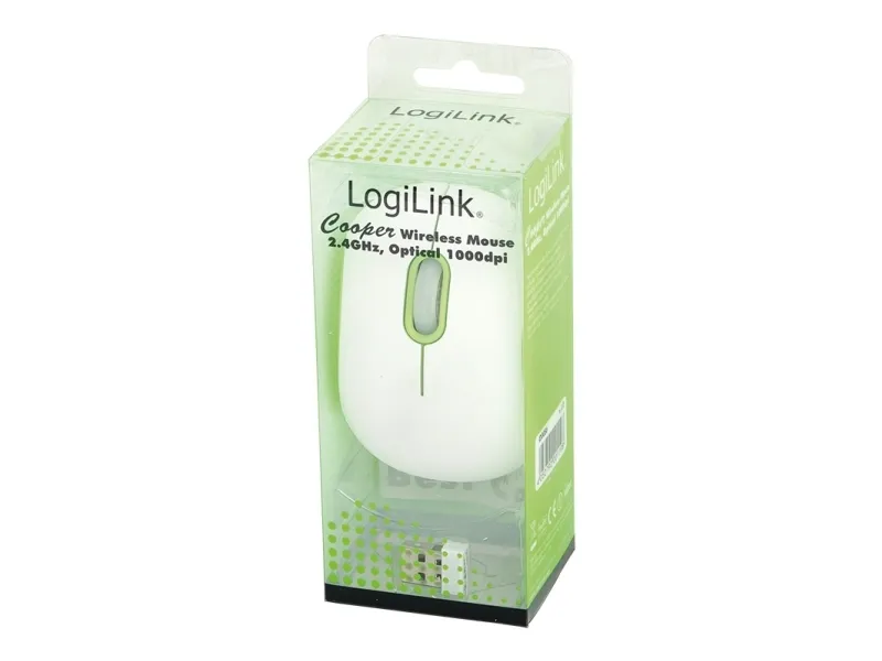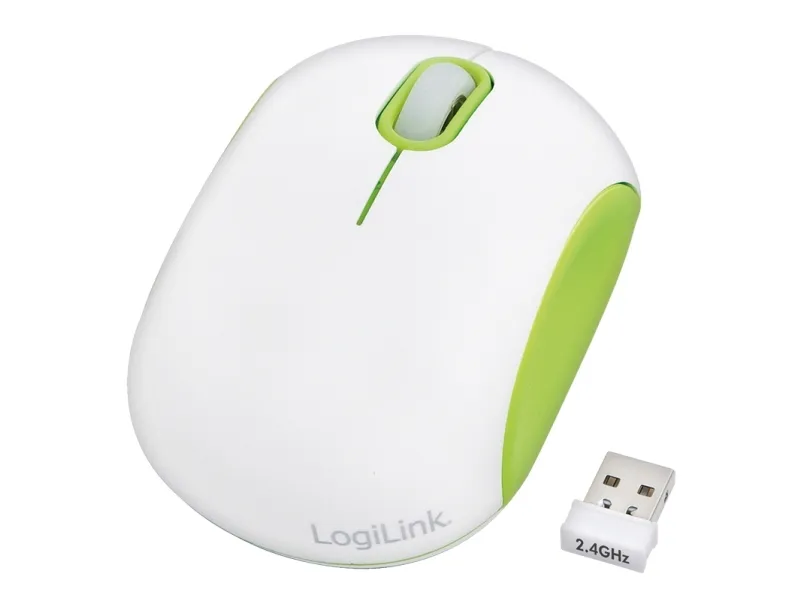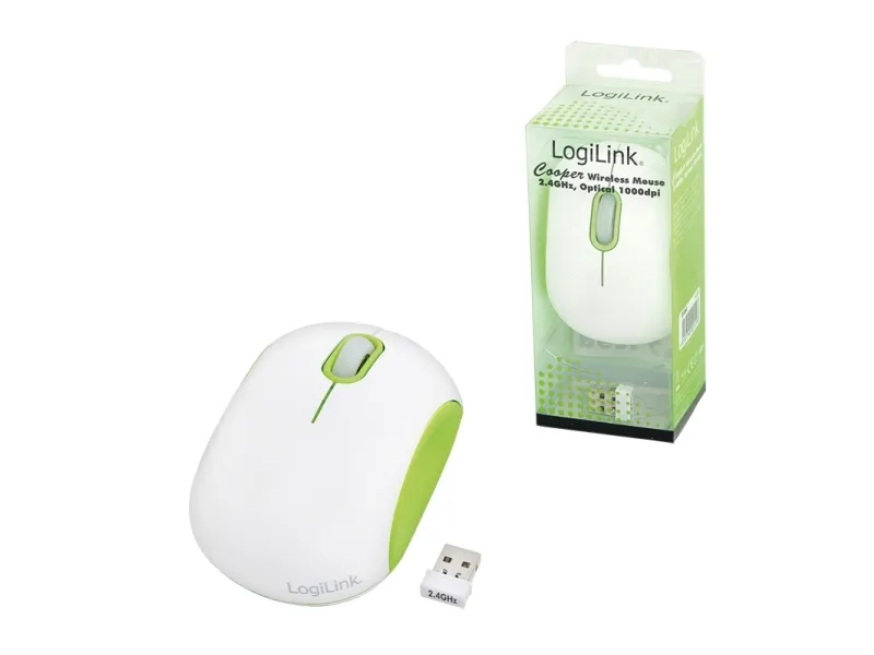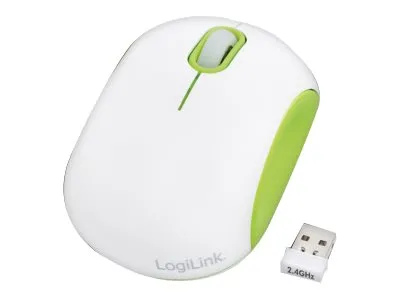 LogiLink Cooper - Mus - optisk - 3 knapper - trådløs - 2.4 GHz - USB trådløs mottaker - hvit, grønn