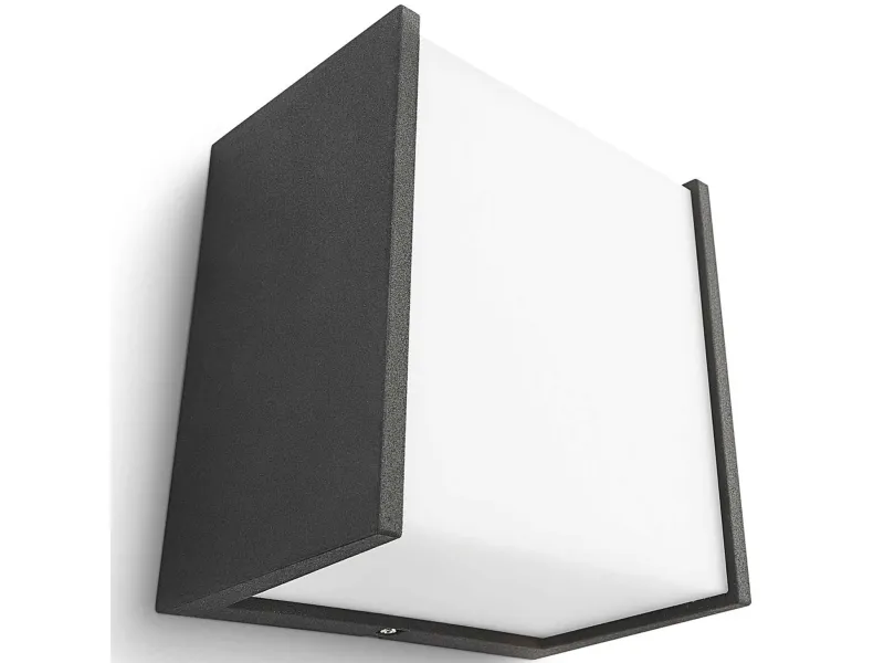 Vägglampan Philips myGarden är utformad som en perfekt kub i borstad, rostfritt stål och ger utomhusplatsen en modern touch. Med den stora fönsterliknande panelen på lampan väcker du liv i uteplatsen.\n- Formgiven för trädgården\n- Hållbara belysningslösningar\n\n- Macaw\n- svart\n- LED