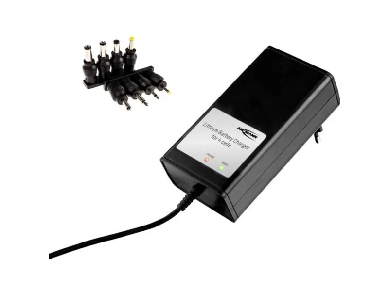 Litium-oplader til fire celler Kan anvendes universelt med udskiftelige netstik · elektronisk beskyttelse mod kortslutning og omvendt polaritet · beskyttelsesklasse: IP30 Litium-opladeren kan ved hjælp af de otte medfølgende sekundære stik anvendes universelt. Cellerne oplades med CCCV ladeprocessen og med en maksimal ladestrøm på 2 A, hvilket giver en kort opladningstid. En sikker opladning garanteres med en elektronisk forpolings- og kurssikring. Kan anvendes globalt med udskiftelige primære stik.