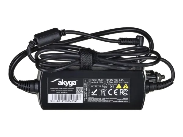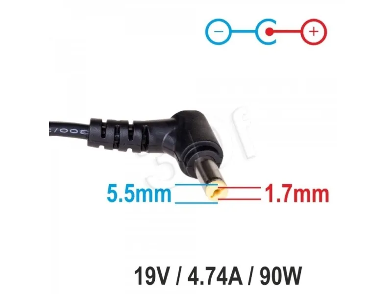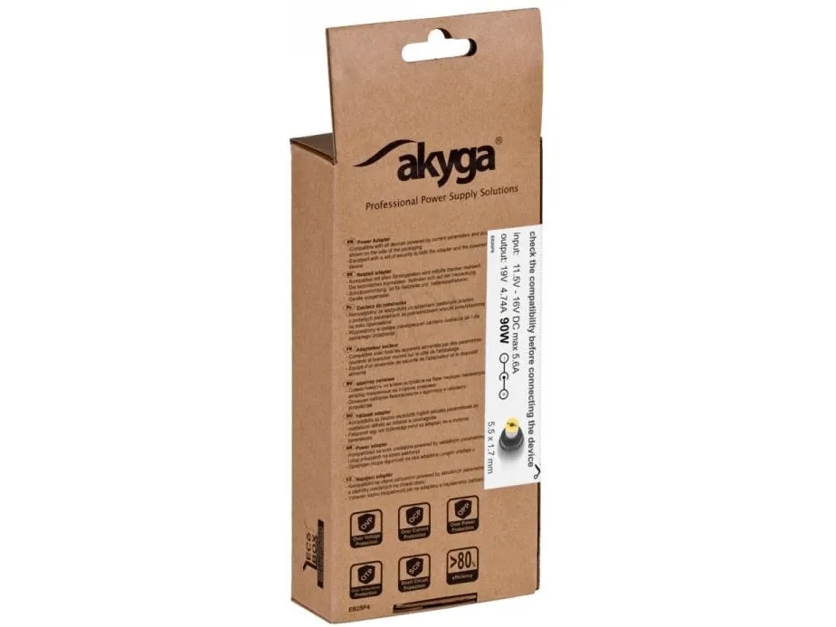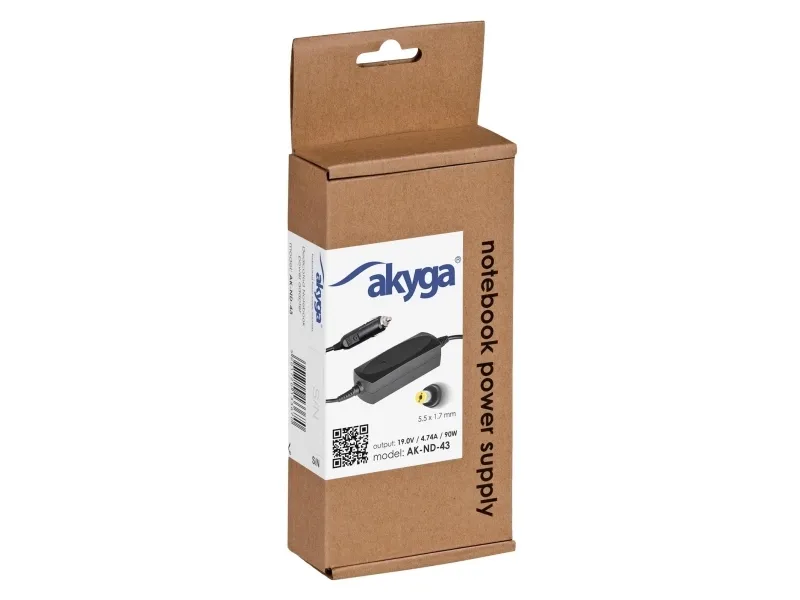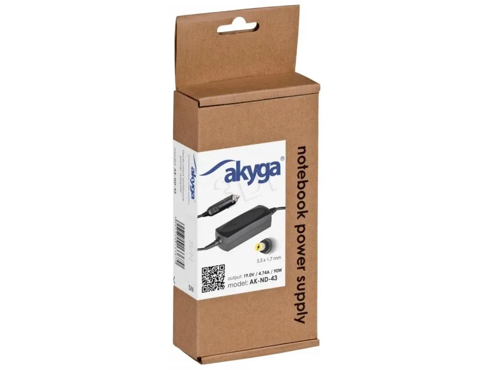 AK-ND-43 is a notebook dedicated power supply for devices powered with 19V/4.74A, 90W power and 5.5 1.7 mm plug. The cord of the power adapter has been equipped with a high-quality ferrite core that prevents and protects devices from any possible mode currents and high frequency noise.