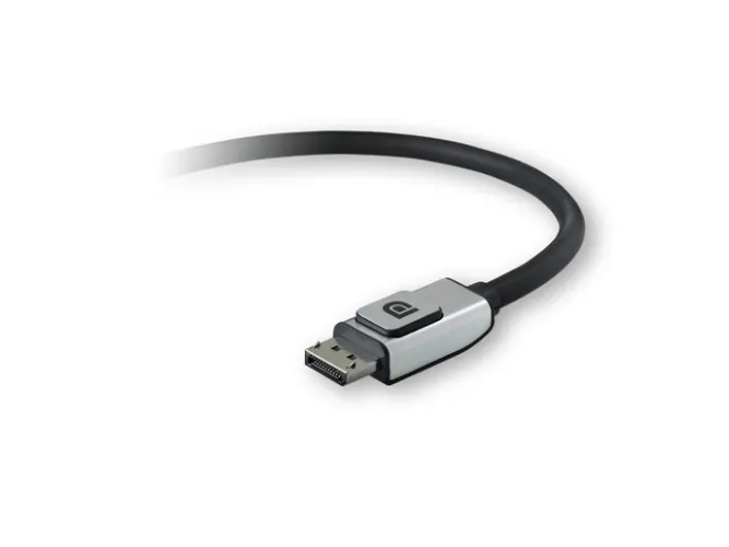 Belkin DisplayPort cables bring a new, all-digital, high-performance cable standard to life. DisplayPort cables provide the ideal digital display interface standard for maximum high-definition performance, all in one cable. This top-of-the-line technology delivers extreme refresh rates, intense color depths, and high resolution for all your computing display needs. With its compact size, Belkin DisplayPort cables will be the only high-definition, all-digital audio video cable a user will need for any DisplayPort-enabled digital computing device. And because DisplayPort technology is highly scalable, DisplayPort is the future-proof standard for all embedded and box-to-box applications.\n\nFeatures:\n- Provides both digital video and audio in one cable.\n- Works with any DisplayPort-enabled desktops, laptops, or monitors.\n- Provides up to 1080p resolution with digital audio.\n- Plug and play for box-to-box applications.\n- Supports HDCP (High-Definition Content Protection).\n- Smaller connector footprint than either DVI or VGA.\n- Supports color depth of 6, 8, 10, 12, and 16 bits per component.