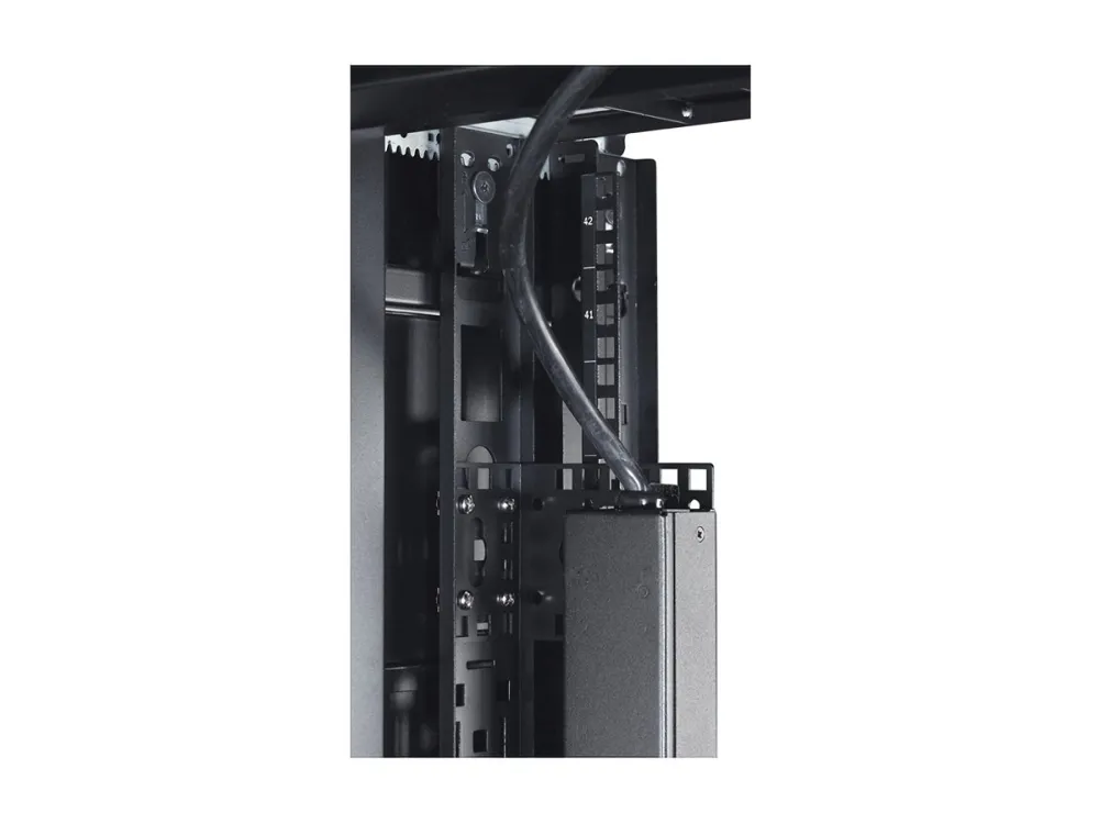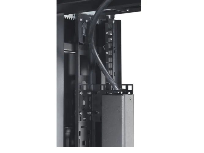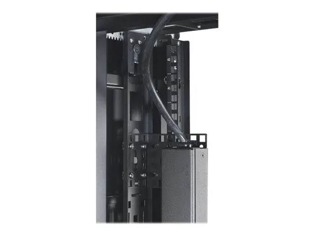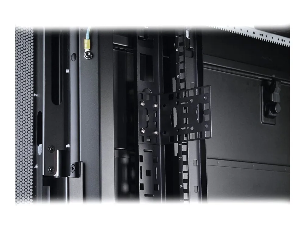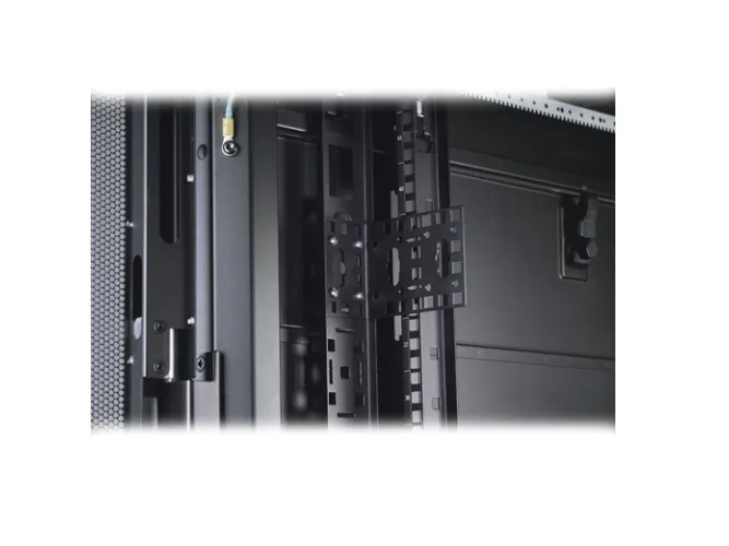 Installs in various locations within the enclosure; for example, on the vertical mounting flanges and on the vertical 0U accessory channels. Provides mounting options for Rack PDUs and other small accessories.