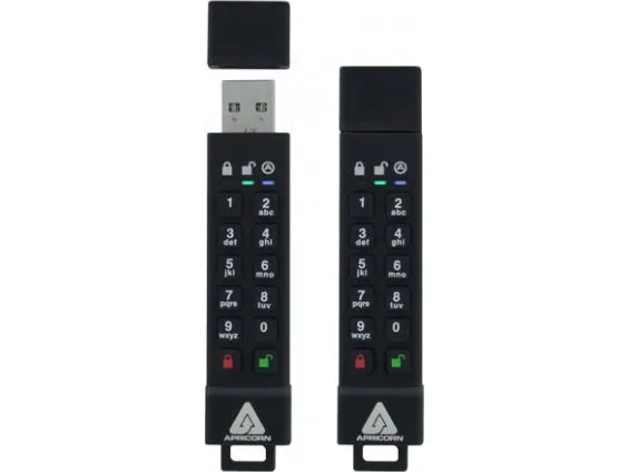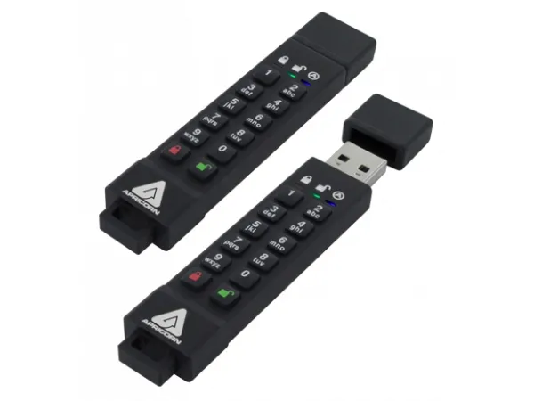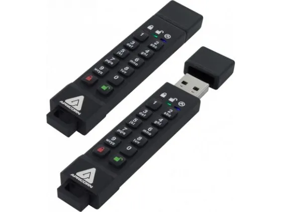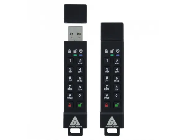 Apricorn's Aegis Secure Key brings security to your fingertips. This easy to use and affordable USB flash drive incorporates PIN access with military grade 256-bit AES hardware encryption. Using a rechargeable battery, the Aegis Secure Key enables the user to unlock the drive with a 7-15 digit PIN before connecting to a USB port.