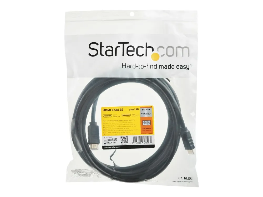 StarTech.com StarTech.com Premium Certified High Speed HDMI 2.0 Cable with Ethernet - 15ft 5m - 3D Ultra HD 4K 60Hz - 15 feet Long HDMI Male to Male Cord (HDMM5MP) - HDMI-kabel med Ethernet - HDMI hann til HDMI hann - 5 m - svart - for P/N: KITBXAVHDPEU, KITBXAVHDPUK, KITBXDOCKPEU, KITBXDOCKPUK, USBC-HDMI-CDP2HD4K60
