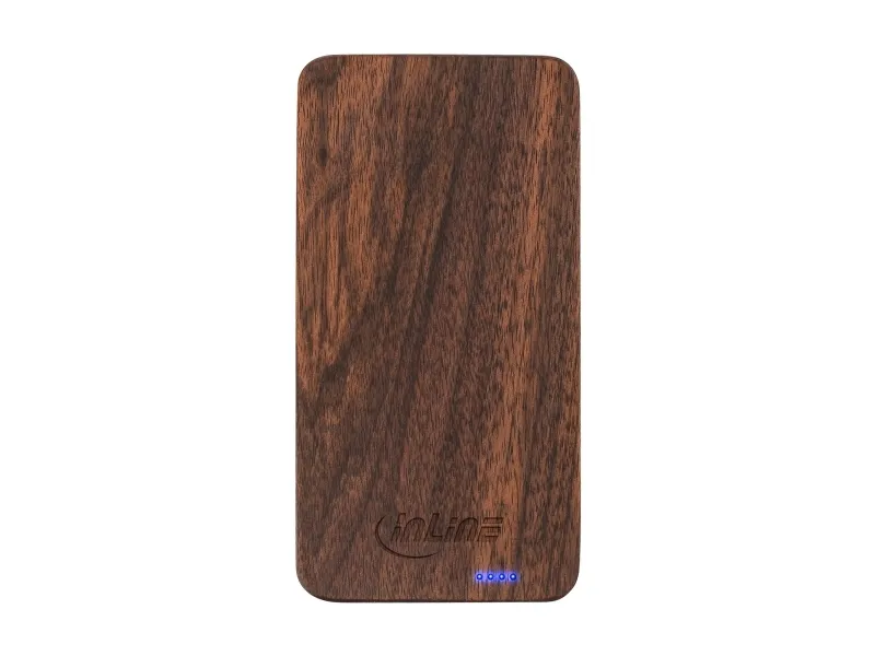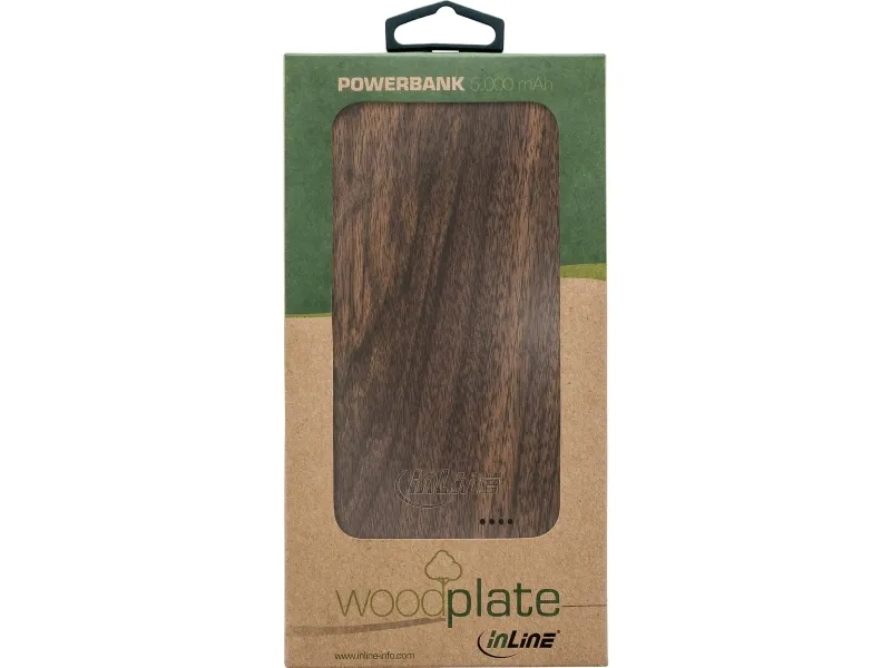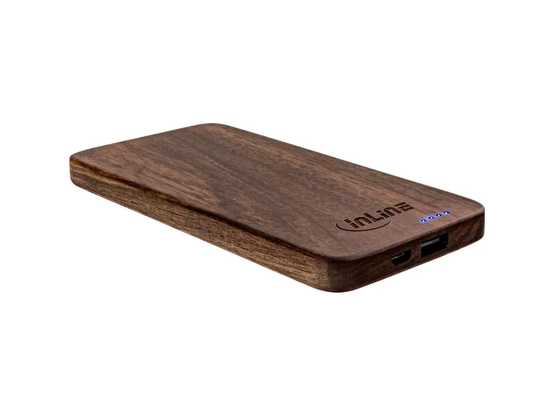Another product of the Inline® woodline series. The flat woodplate USB Powerbank with 5000mAh Li-Polymer battery. The real wood housing makes the Power Bank for a visually appealing companion for traveling, when camping, on vacation, etc. The USB port allows your devices such as mobile phones or action cams. The USB connector provides up to 2,1A charging current.