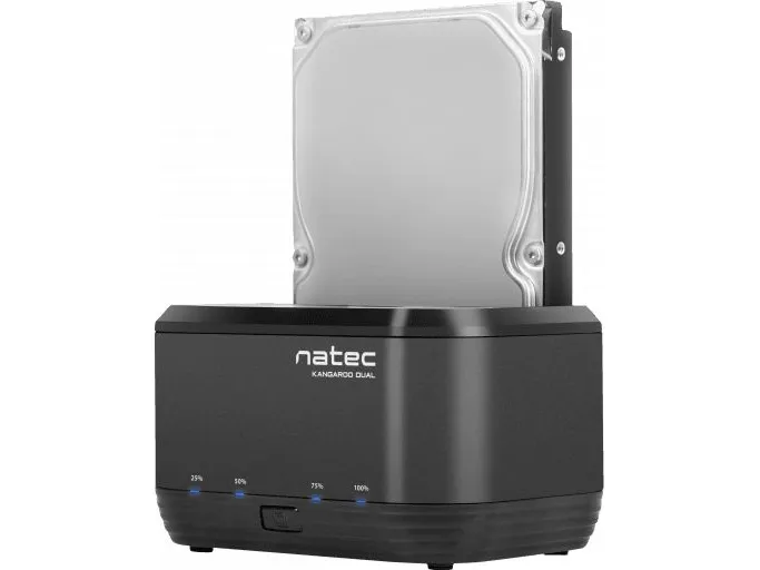 NATEC Kangaroo Dual. Storage media type: HDD, SSD, Storage drive interface: Serial ATA, Serial ATA II, Serial ATA III, Storage drive sizes supported: 2.5,3.5". Host interface: USB 3.2 Gen 1 (3.1 Gen 1) Type-A. Maximum data transfer rate: 5 Gbit/s, Product colour: Black, Material: Aluminium. Width: 129 mm, Depth: 95 mm, Height: 75 mm. Windows operating systems supported: Windows 10, Windows 2000, Windows 7, Windows 8, Windows Vista, Windows XP, Mac operating systems supported: Mac OS 9.0, Mac OS 9.1, Mac OS 9.2, Mac OS X 10.0 Cheetah, Mac OS X 10.1 Puma, Mac OS X 10.10...