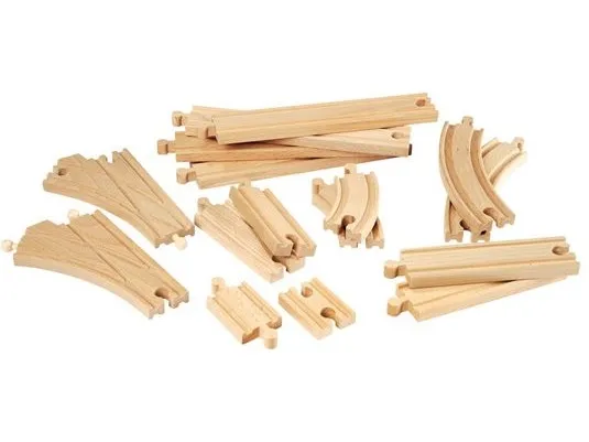 Ekstra skinner for utvidelse av BRIO togbanen. Med 16 skinner og byggebeskrivelse.