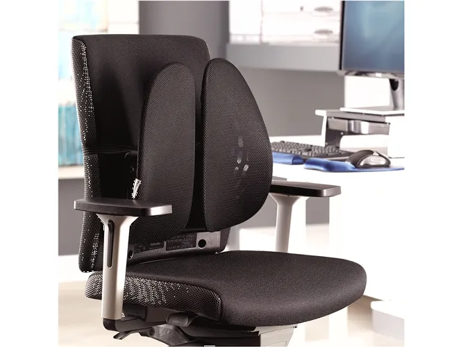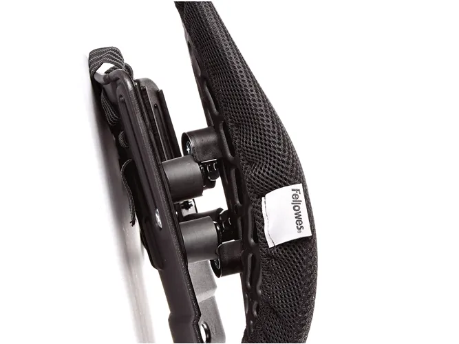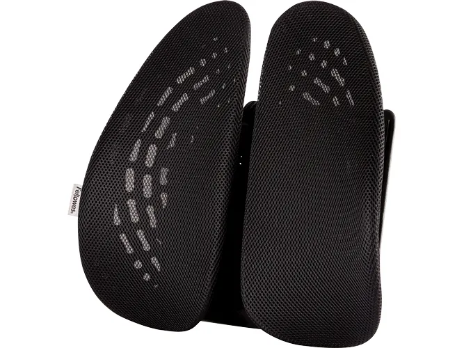- Delivers full back support for extended periods of sitting\n- Two wings move independently to mould to your back with vents to promote airflow.\n- Height adjustable to maximize comfort to 7 different settings (from 14cm in the lowest setting to 23cm on the highest).\n- Easy to attach elastic strap fits most chairs.\n- Modern design complements any workspace.