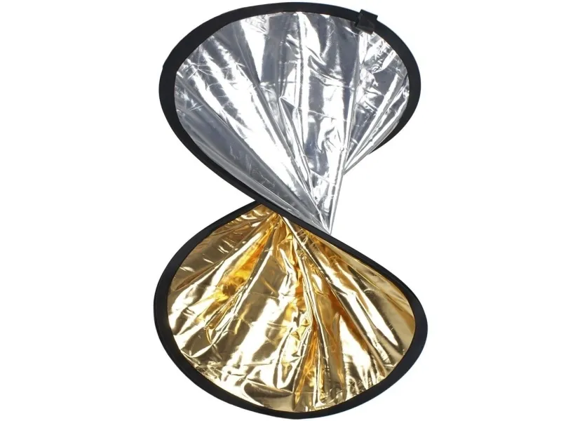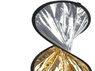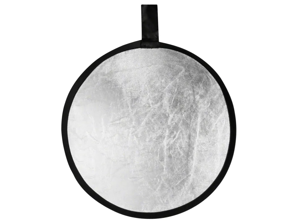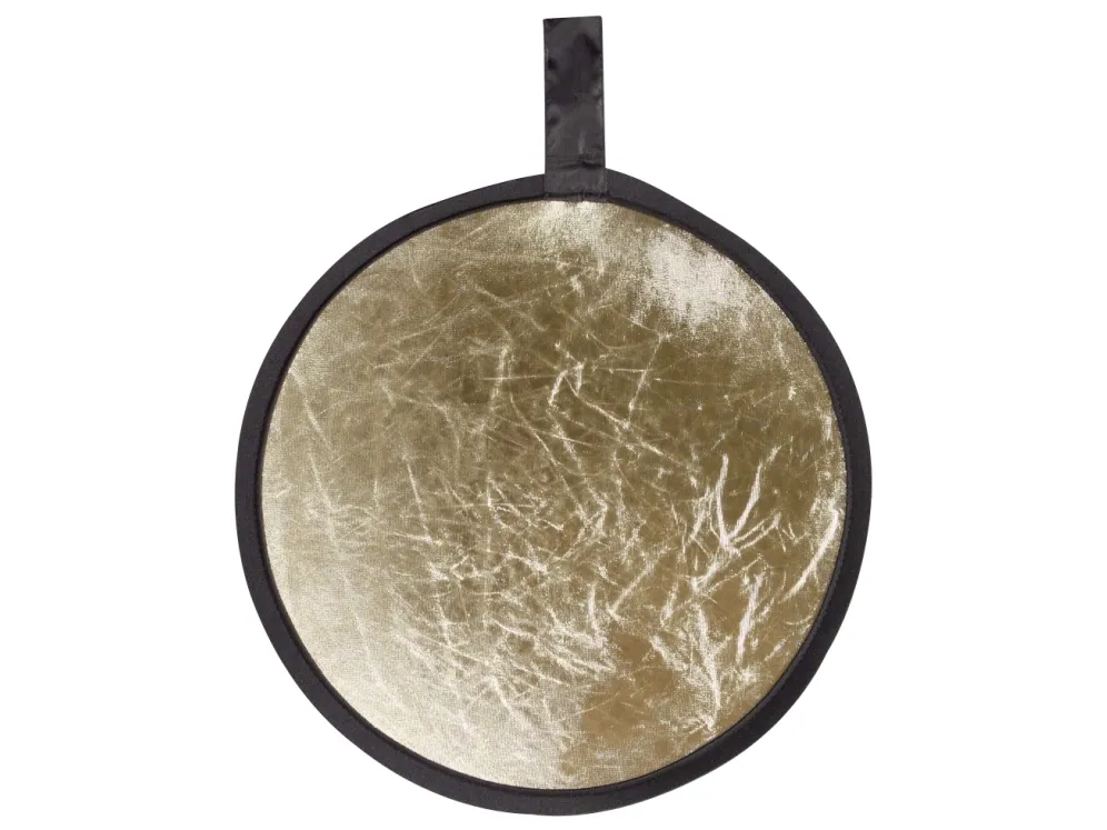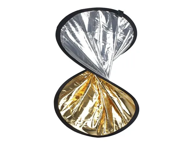 The Double Reflector provides two different reflection surfaces: The silver surface for cool light and the gold surface for warm colours. With a diameter of 30cm, the Reflector is ideal for the use on shooting tables, product plates, etc. The foldable reflector is delivered folded in a carrying bag (approx. Ø15cm).