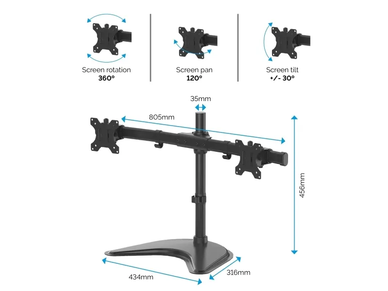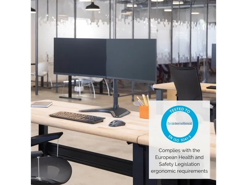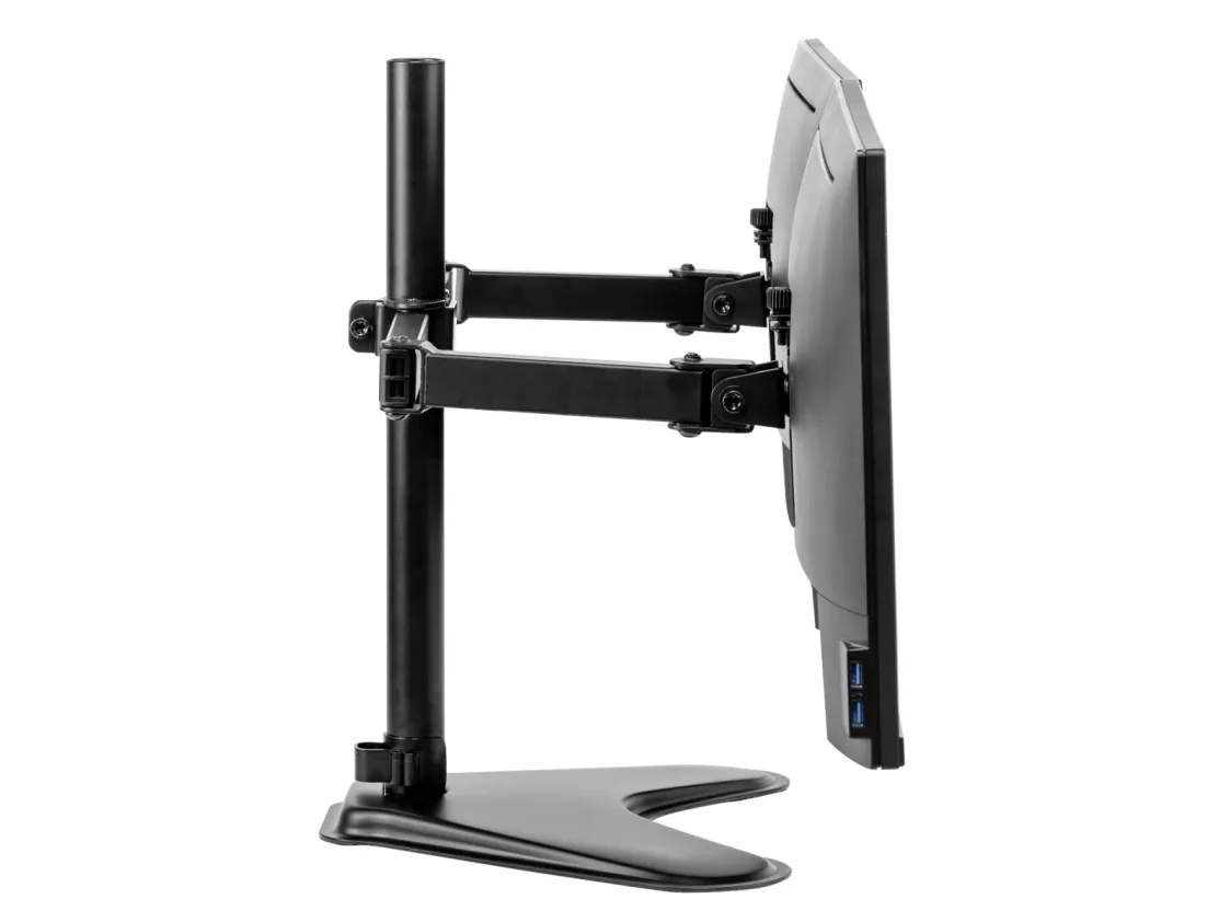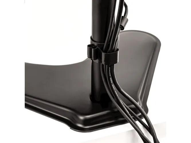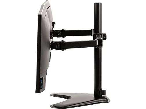 The Fellowes Professional Series Freestanding Dual Horizontal Monitor Arm enhances workspace efficiency by allowing two monitors to be mounted above the desk surface. Made from a combination of durable plastic, aluminum, and steel, this stand supports displays of up to 27 inches, providing a stable platform for productivity and multitasking. Integrated cable management keeps wires organized, promoting a clean work environment. Assembly is required, but the setup process is straightforward, ensuring users can start enjoying their improved workstation in no time.
