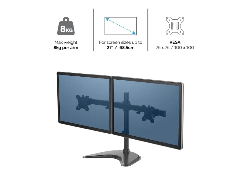Fellowes Professional Series Free-standing Dual Horizontal Monitor Arm - Stativ - for 2 skjermer - plastikk, aluminium, stål - svart - skjermstørrelse: inntil 27"