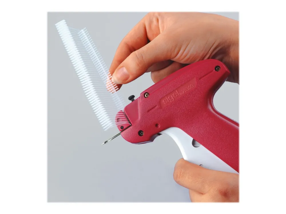 Tagging cords for tagging guns, made of tear-proof, transparent nylon, 25 mm long. The fast, long-lasting way to attach prices or information to goods. Contents: 2000 cords. A tagging gun (ZB300) is also available from the Sigel range.