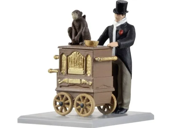 H0 drejeorgler Drejeorgle skal ses som et publikum på mange offentlige steder. Drejeorgelspilleren passer med sit realistiske bevægelsesmønster på ethvert anlæg.