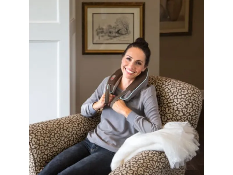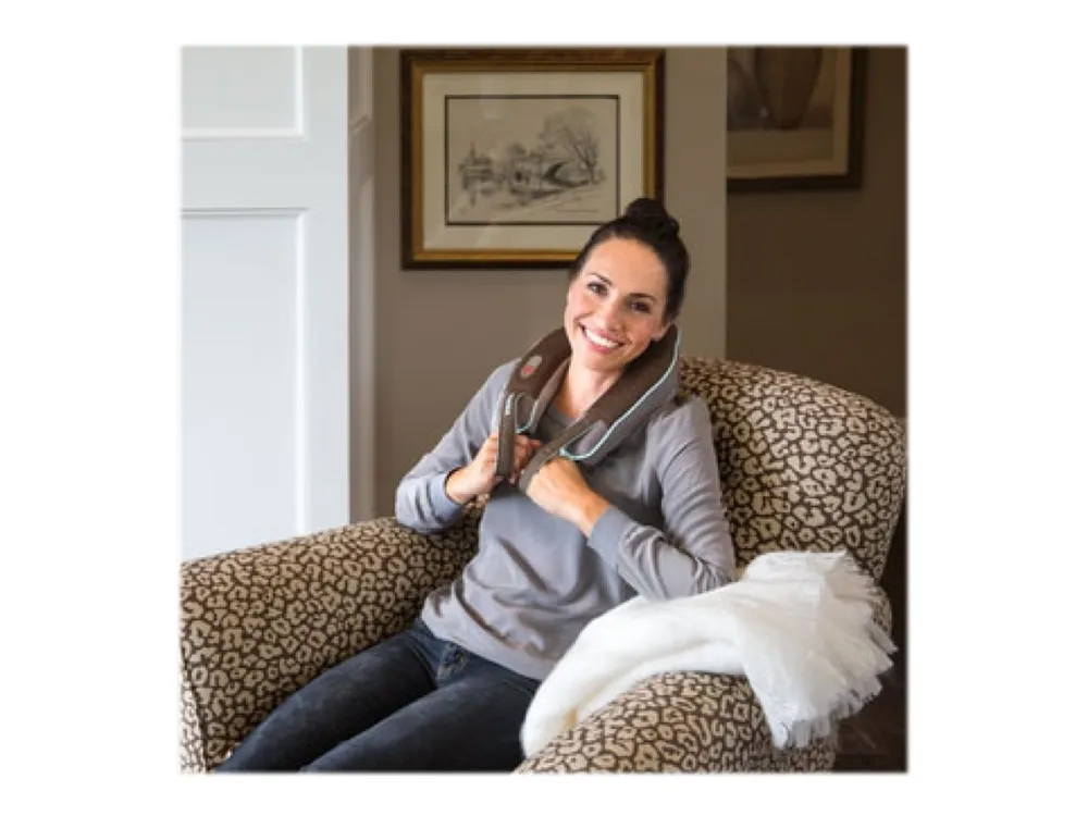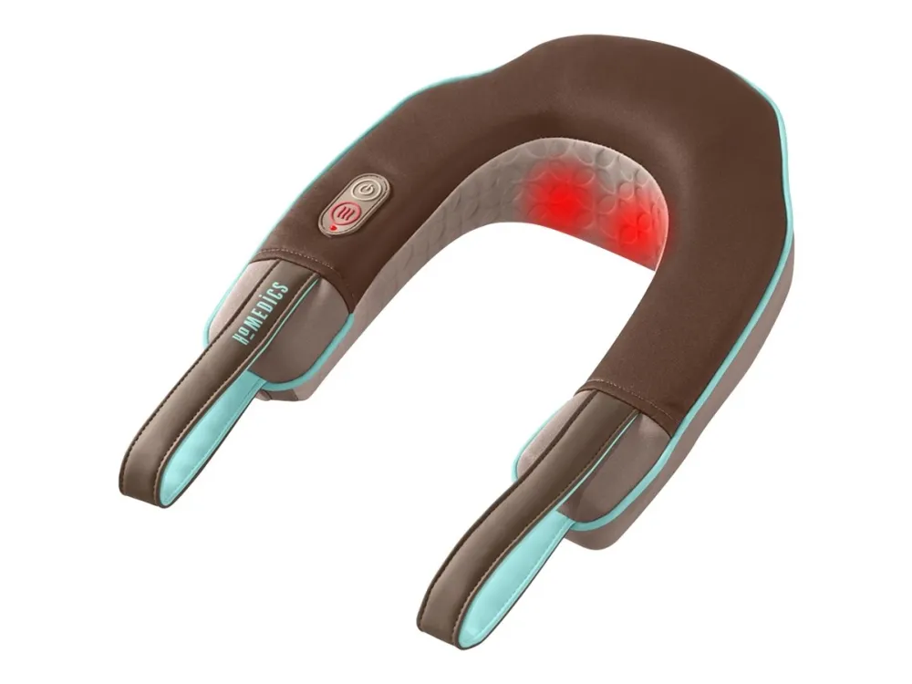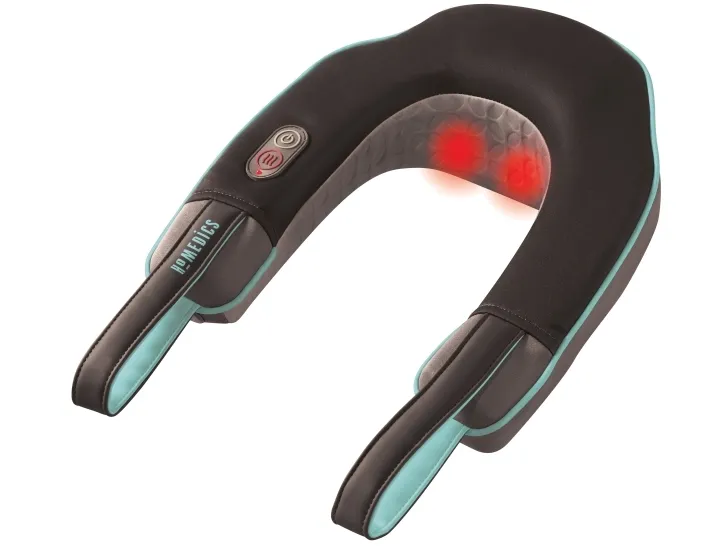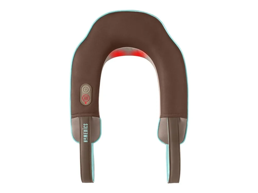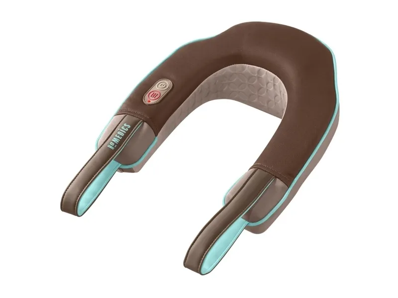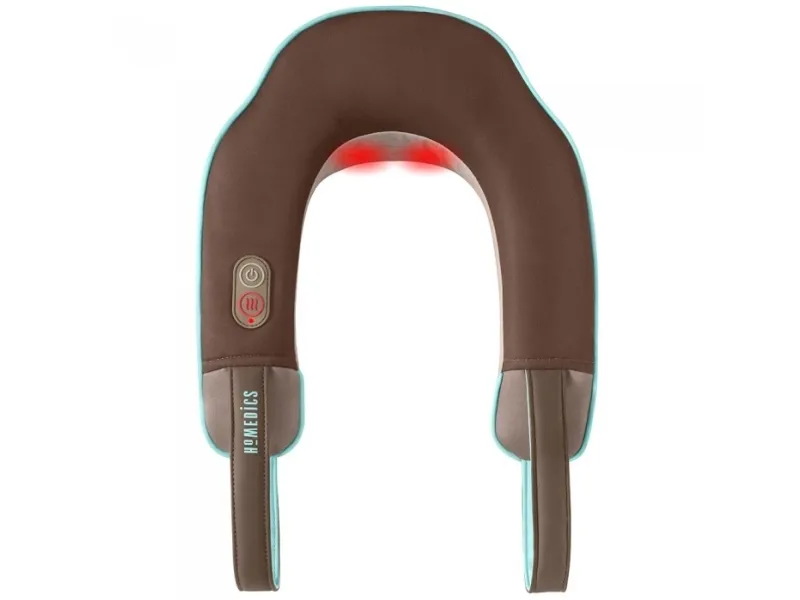 The HoMedics® Neck and Shoulder Massager with Heat delivers an invigorating vibration massage when you need it most. Its integrated control allows you to choose from 2-speeds and add heat to further sooth tense muscles. This neck and shoulder massager’s portable Ergo Comfort Design flexes and shapes to your body, providing the perfect fit for the perfect massage.\n\n- Invigorating Vibration Massage\n- Soothing Heat allows for a relaxing massage\n- Integrated Control allows you to choose from 2-speeds and soothing heat\n- Ergo Comfort Design – Internal wire frame flexes and shapes for a perfect fit\n- Portable and Convenient – operates on batteries, or use the included AC adaptor (4 AA not included)
