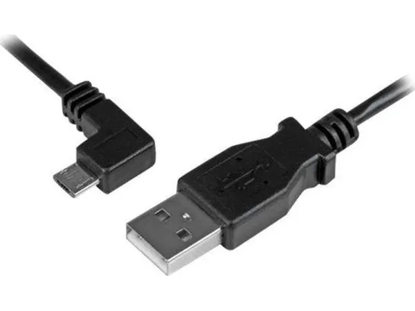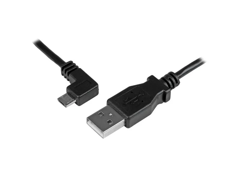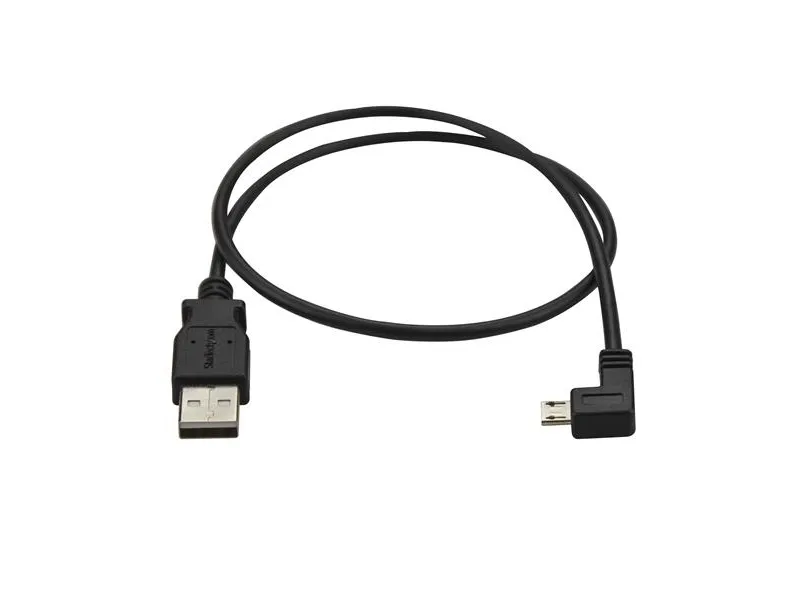 StarTech.com Left Angle Micro USB Cable - 1 ft / 0.5m - 90 degree - USB Cord - USB Charger Cable - USB to Micro USB Cable (USBAUB50CMLA) - USB-kabel - Micro-USB type B (hann) venstre-vinklet til USB (hann) - USB 2.0 - 50 cm - svart - for P/N: USB2PCARBK, USB2PCARBKS, USBEXTAA10BK, USBEXTAA6BK, USBLT2PCARW, USBUB2PCARB