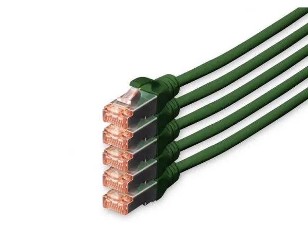DIGITUS Professional - Koblingskabel - RJ-45 (hann) til RJ-45 (hann) - 10 m - SFTP - CAT 6 - med støvel, halogenfri, formstøpt, uten hindringer - grønn (en pakke 5)