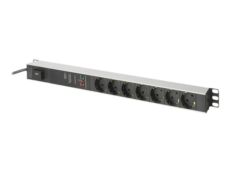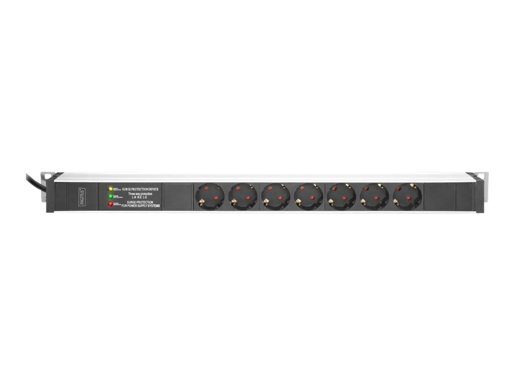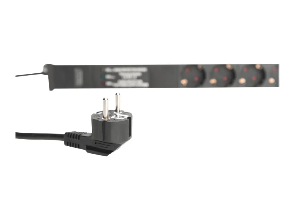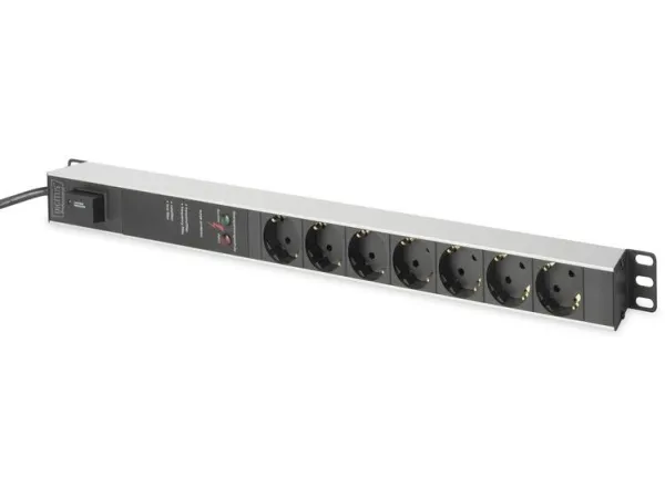 The DIGITUS power strips are the perfect solution for your network or server rack. In terms of power distribution, the PDU meets requirements of many applications in IT, network technology, laboratories as well as the home. The power strip can be mounted vertically in the cabinet. An integrated mains filter and overvoltage protection protects the connected loads from interference from the mains. Depending on the rack type, it is possible to mount the power strip with the outlets facing right or left.
