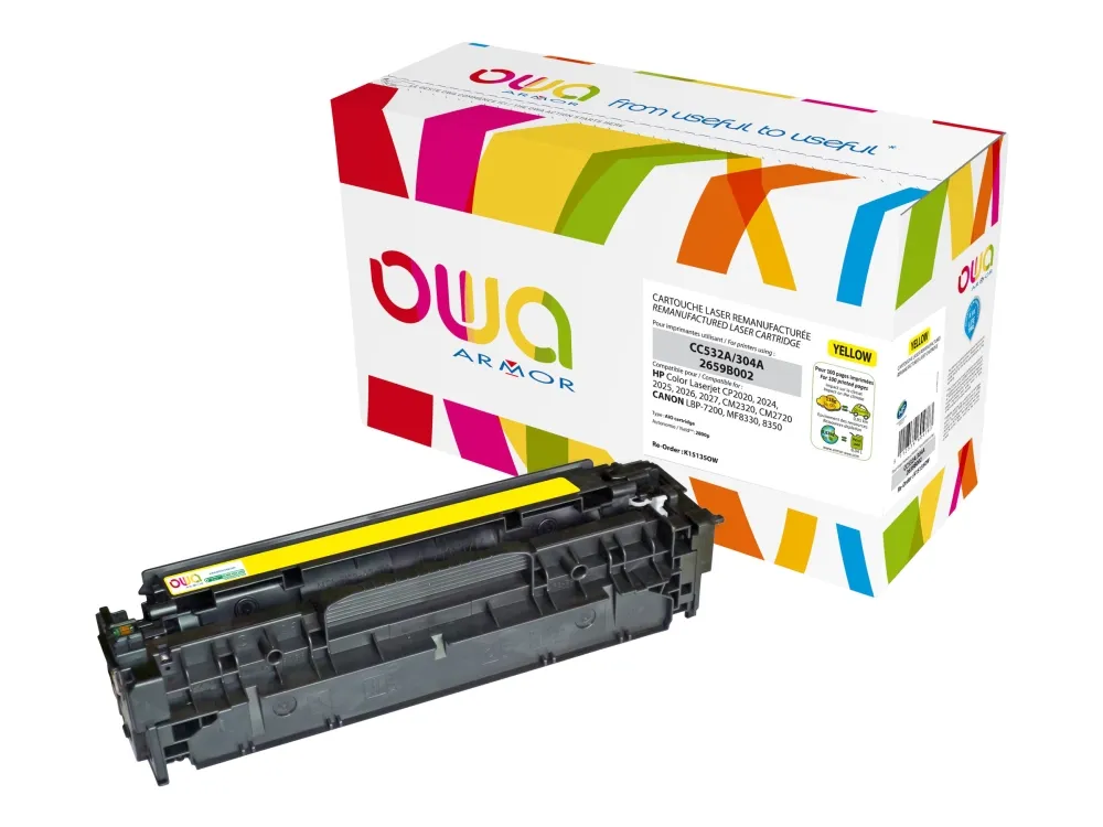 OWA toner kompatibel med HP CC532A 304A, CANON 2659B002 EP-718Y