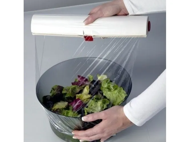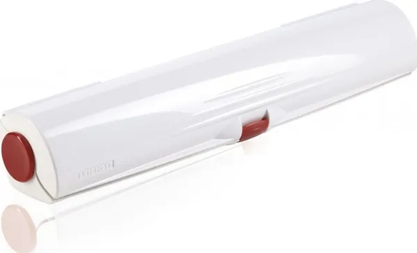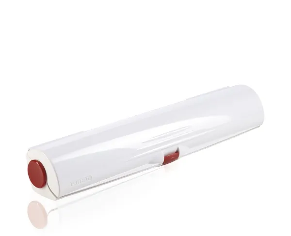 The movable foil cutter Perfect Cut from Leifheit cuts cling film there, where it is needed. It is the unique foil cutter, which is suitable for the new roll width of 33 cm. The easy to handle casing is equipped with a special polished cutting blade, which cuts the foil neatly. Maximum roll width 33,5 cm. 3 years guarantee.