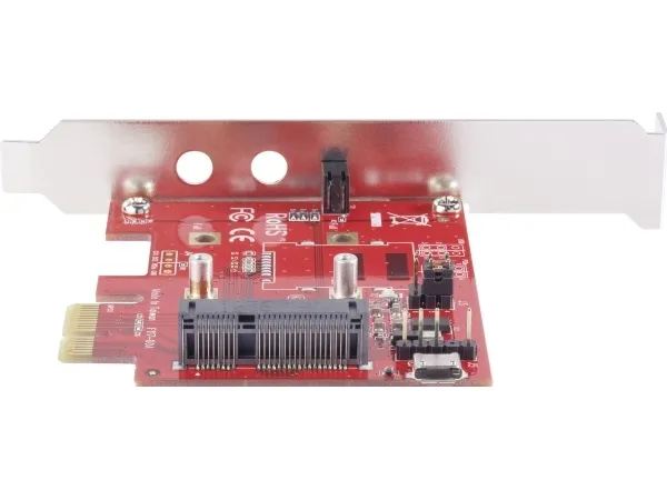 Udnyt eksisterende Mini-PCI Express-kort, såsom WLAN, USB eller SATA også på normal PCI Express slot. Konverterer 52-pol. Mini-PC til PCIe x1 bus-slot Understøtter PCI and USB 2.0 Med Micro-USB 5-polet-bøsning
