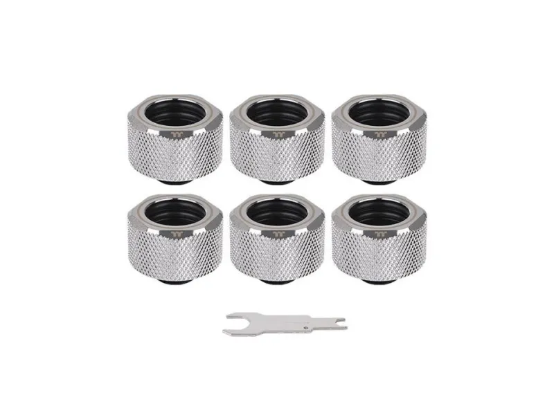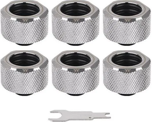Thermaltake Pacific C-PRO G1/4 PETG Tube 16mm OD Compression – Chrome (6-Pack Fittings)\n\nThe Pacific C-Pro Series is a revolution in fitment design. It simplifies the process of setting up a liquid-cooling loop and provides a seal that outperforms traditional compression fittings. By using 4 preinstalled O-rings and an overhauled design, the C-Pro Series is the new standard in fitment technology and it is exclusive to Thermaltake.\n\nTT Premium\n\nTo continue achieving the corporate mission of delivering the perfect user experience, Thermaltake developed “TT Premium” with the essence of combining supreme quality products with a new logo design. TT Premium is far more than just a guarantee of quality. Behind the name, it represents the passion in DIY, Modding and Thermaltake’s desire to be the most innovative brand in the PC hardware market. To satisfy the demand of the high-end PC users, TT Premium follows its core values of Excellent Quality, Unique Design, Diverse Combinations and Boundless Creativity to provide a high performance PC product for every enthusiast.\n\nTt LCS Certified\n\nTt LCS Certified is a Thermaltake exclusive certification applied to only products that pass the design and hardcore enthusiasts’ standards that a true LCS chassis should be held to. The Tt LCS certification was created so that we at Thermaltake can designate to all power users which chassis have been tested to be best compatible with extreme liquid cooling configurations to ensure you get the best performance from the best features and fitment.\n\nHigh-Flow and Leak-Free Structure\n\nThe C-Pro Series compression fittings are custom made for simplify the installation of PETG tubing. They are designed to work in tight spaces without compromising the compression seal or impacting the flow of coolant. The C-Pro range also features four rubber O-rings instead of the traditional two, this creates a more secure seal and more reliable performance.\n\nFor tubes:\n- Outer diameter: 16mm \n\nExclusively Designed Open-End Wrench\n\nThe included wrench with double-ended design is specially crafted for Thermaltake Pacific Series fittings. The smaller end is used to grip the C-Pro Series compression fittings, providing an easier and faster way to turn the fitting.\n\nEasy Installation, Game-Changing Design\n\nBy rethinking the traditional compression fitting design, this new concept makes it easier than ever to install custom liquid-cooling loops.\n\nTaiwan Patent: 106202166\nUS Patent Applied\nChina Patent Applied\n\nRemarkable Expansion\n\nThermaltake offers a full line of Pacific Series components for enthusiasts to build up aesthetically-superior water cooling systems by incorporating externally-modular upgrades for their chassis.