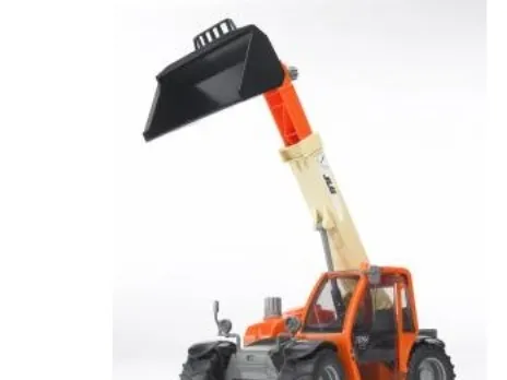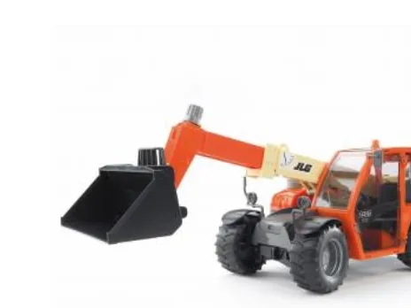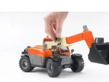 The JLG telescopic loader is a true all-rounder. Do large amounts of earth have to be shovelled? Or delicate goods loaded onto palettes? The JLG telescopic loader is a reliable and effective partner in any situation. Its small size and the greatly extendable telescopic arm are exactly what make it the number one choice for many different locations of use. The JLG model is carefully controlled with four accentuated silver turning handles. Besides the adjustable arm height, the extendibility of the arm and alterability of the angle of the tool holder, the telescopic loader has fully functional four-wheel steering. This makes steering both the JLG telescopic loader and the Bruder model as easy as child's play.