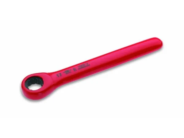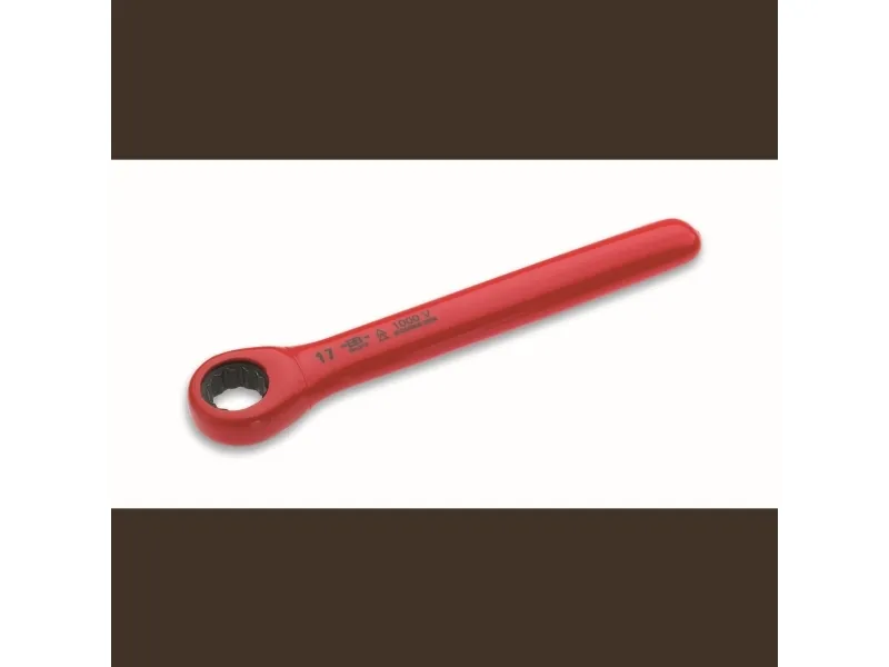 1000V skrællenøgle ifølge DIN 3110 / ISO 3318 (moment) fra krom vanadium stål. Skraldemekanisme med fine tænder (72 tænder) og en tilbagevenden vinkel på 5 ° (side vinkel). Den højre-venstre Kørslen udføres ved blot at dreje nøglen skruenøgle størrelse 19 mm Vægt 56 g.