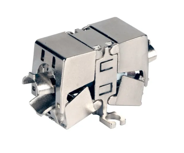 The Class EA connection module provides high perfomance for 10 Gbit/s at small required space, combined with easy assembling without the need of special tools. Universal possibilities of mounting through screwing, linking. Optional 19“ panel of up to 24 x modules provides multiple field of applications: Connection of installation cable, e.g. in canals or ducts. Connection of installation cable with patch cable for end-to-end links or consolidation point applications.EFB Elektronik 37597.1. Cable standard: Cat6a, Product colour: Metallic. Width: 18 mm, Depth: 39 mm, Height: 26 mm