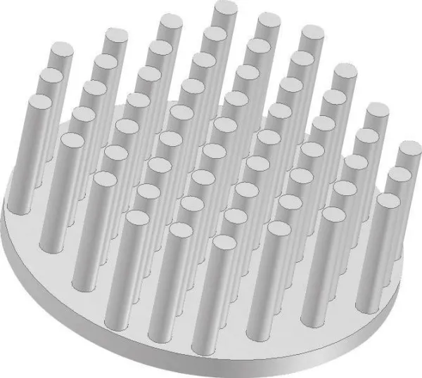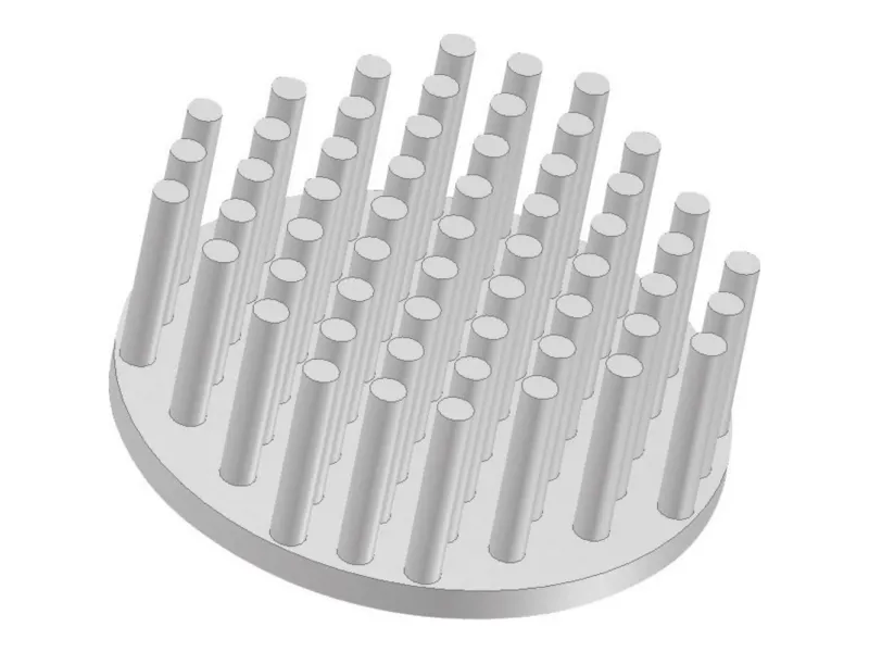 Pin heatsinks med fremragende varmeledende egenskaber ved materialer legering og homogent materiale struktur. Selv varmefordeling i bunden og i benene i varmestrømmen retning.