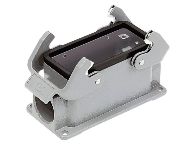 Socket boliger til serie 24 B til industrielle applikationer. Fås i metal (aluminium trykstøbning). Producent-typebetegnelse: Han® 24B-asg2-QB-M25