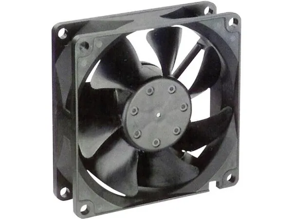 NMB® aksialventilator 80 x 80 mm Denne ventilator med kugleleje lever op til den højeste kvalitetsstandard. Omrdrejningsretning mod venstre set fra rotorsiden; blæser over mellemstykke.