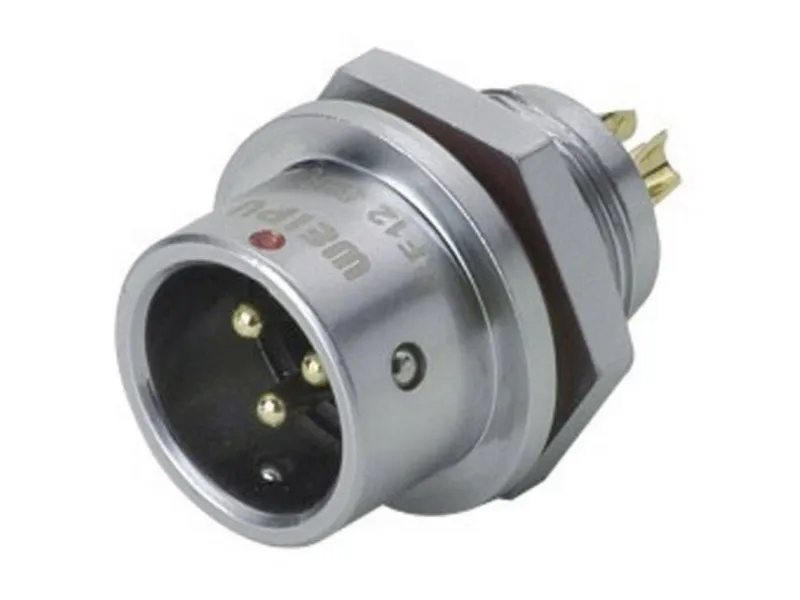 Den Cirkulær kontakt Series SF12 med push-pull låsning giver en kompakt og sikker forbindelse. Hurtig og nem skub, låse og adskillelse. Blinde og nem isætning og fjernelse er vanskelige at få adgang til et lille fodaftryk. Anvendelse i måle- og protokol enheder i robotteknologi og industriel teknologi. Inkl. kasket