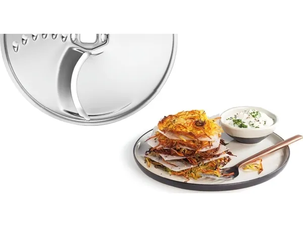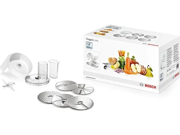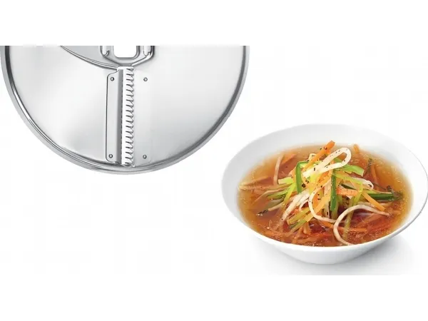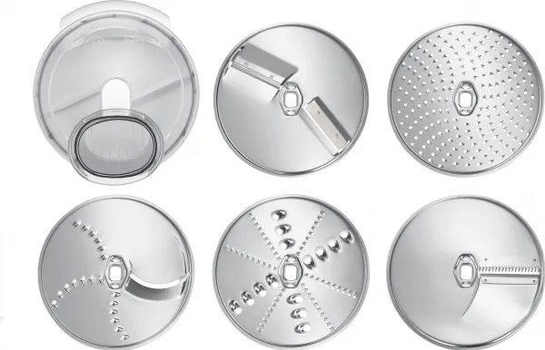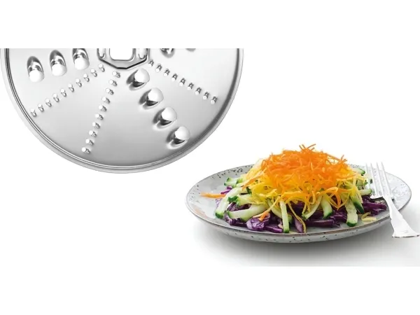 - Allsidig - skjærer, strimler og river raskt og enkelt - Rustfri skive som er smaksnøytral og lett å rengjøre - Fem forskjellige skiver til riving, kutting og strimling. - til MUM5...