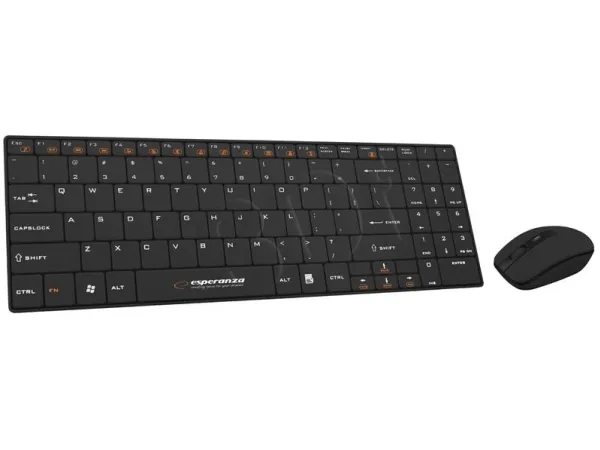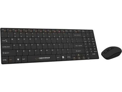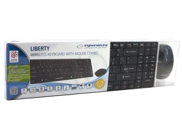The Esperanza EK122K LIBERTY is a versatile wireless keyboard and mouse set designed to enhance productivity and convenience. With a 2.4 GHz interface, it provides reliable connectivity for seamless use without the hassle of tangled wires. Functionality is at your fingertips with specially designated multimedia keys for easy access to vital applications like email, calculator, and browser, making everyday computing tasks more efficient. The keyboard features dedicated keys for volume control, mute, play/pause, and track navigation, allowing for smooth multimedia management. This ergonomic set prioritizes comfort during extended use and incorporates essential shortcuts to streamline workflows. The Esperanza EK122K LIBERTY is a practical solution for modern computing needs.