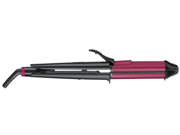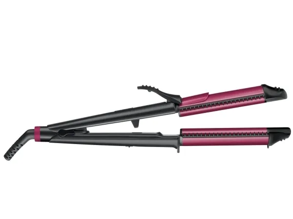 With 2 integrated combs for efficient straightening, a large 35 mm diameter for loose curls, and 3D plates for beautiful waves, it adapts to your every mood. An ionic generator reduces static electricity and frizz for smooth, shiny results, while the ceramic coating ensures effortless glide and a silky finish. Plus, two temperature settings adapt to any hair type. Rounding it all off are a 360° swivel cord for comfortable use and convenient features for safe handling and easy storage.