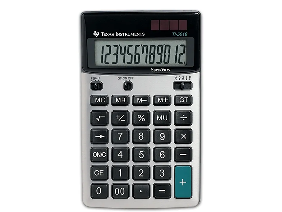 Features Summary Stylish desktop calculator for home, office, or retail with a SuperView™ display for quick work on the go. - Easy-to-read, 12-digit, SuperView display. - Large keyboard with contoured keys. - Percent key.