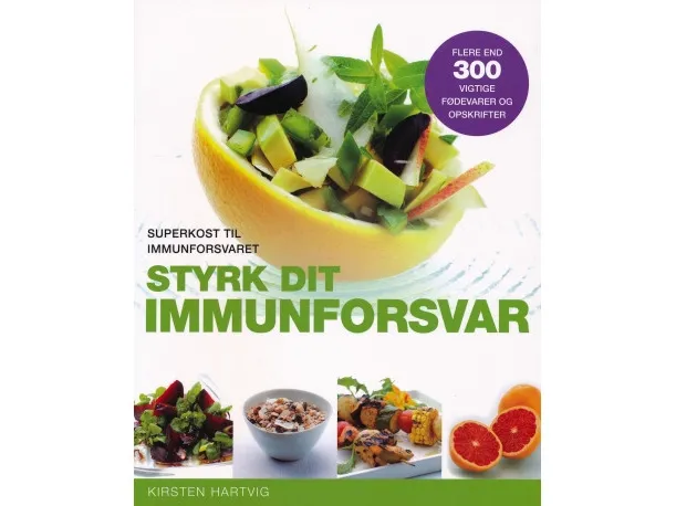 Løft din sjæl og genskab balance i både sind og krop med disse velsmagende opskrifter - designet til at forbedre din krops naturlige forsvar. Denne interaktive guide viser, hvordan det rigtige valg af helbredende fødevarer kan hjælpe dig med at bekæmpe sygdom, se og føle dit bedste og øge den samlede vitalitet. Information er organiseret efter tema - mad, sygdom og opskrift - hvilket gør dette til din komplette go-to-kilde til immunitetsfremmende næring. En praktisk, letforståelig og smukt illustreret vejledning til de immunstyrkende egenskaber i den kost vi spiser. Styrk dit immunforsvar viser, hvordan vi bevarer kroppens forsvar styrkes ved hjælp kendskab til den kost, vi vælger. Bogen indeholder mere end 180 særligt udarbejdede opskrifter. Vegansk kost, Forretter, hovedretter, desserter, supper juicer og urtedrikke, ligesom daglige menuer og kostplaner medfølge. Bogens forfatter, Kirsten Hartvig øser ud af al sin erfaring i denne fantastiske bog. Hun er en registreret naturopath, medicinsk herbalist, ernæringsekspert, veganer og forfatter af 14 bøger om naturlig sundhed.