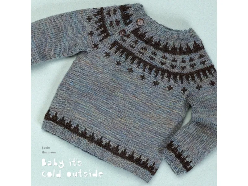 BABY IT'S COLD OUTSIDE Blide farver og bløde garner kendetegner denne lille bog til baby. De 14 modeller - i størrelserne 0 -18 mdr. - tæller bl.a. dragter, huer, bukser, veste og trøjer. Små detaljer og enkelhed, alt strikket i garn fra Isager. Design af Susie Haumann