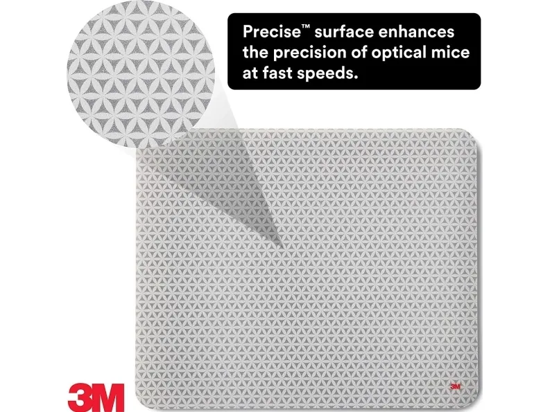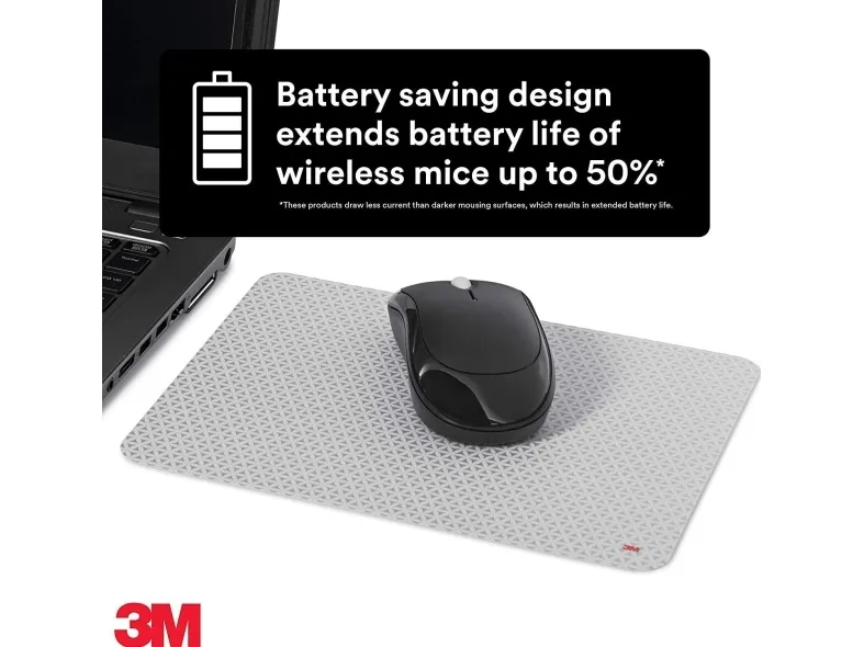 Precise surface enhances the precision of this optical mouse at fast speeds. Battery saving design significantly extends battery life. Ultra-thin, portable mouse pad with 3M repositionable adhesive stows conveniently on back of notebook computers.