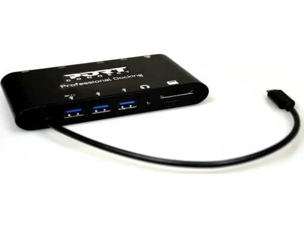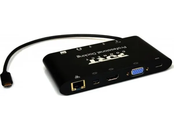 PORT connect TRAVEL 1X4K ++ - dokkingstasjon - USB-C - VGA, HDMI, Mini DP - 1GbE