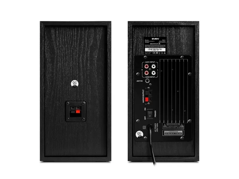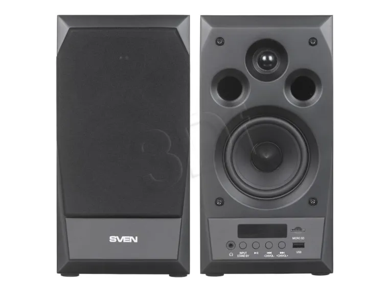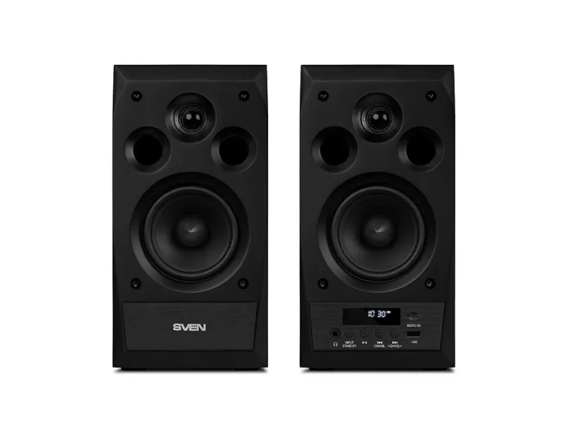 An extremely broad frequency range of these SVEN speakers will let you get the utmost pleasure out of listening to music of any style. The model features an impressive deep bass due to two phase inverter ports at the front. The lower boundary of the frequency range is at 45 Hz. The superbly elaborate high and medium frequencies will retain the most intricate subtleties of any complex music piece. A classical orchestra, vocals, exquisite jazz improvisations, rock, synth music – there is nothing that MC-10 speakers cannot cope with.