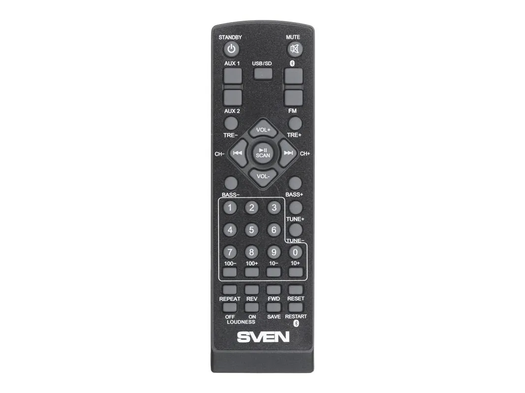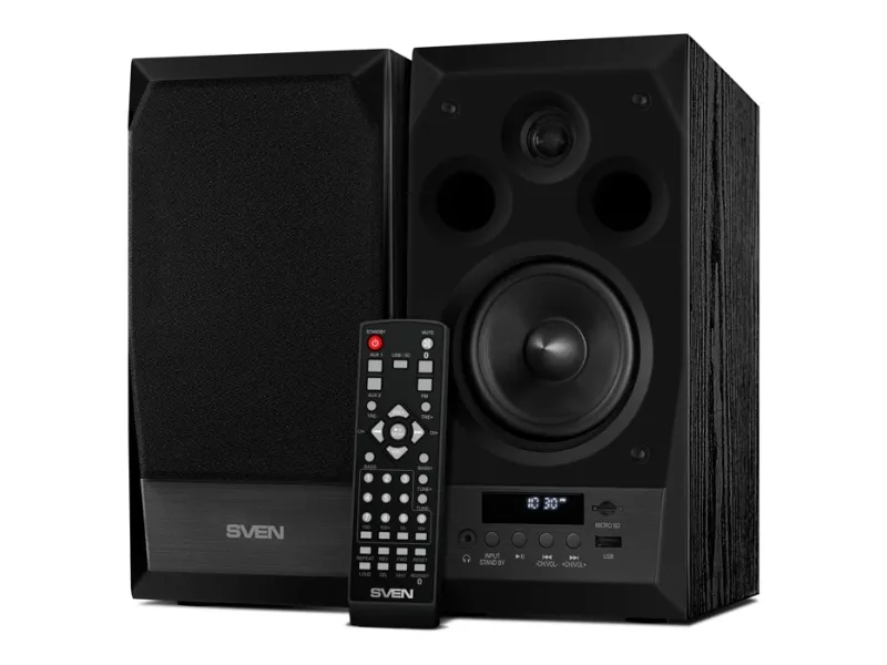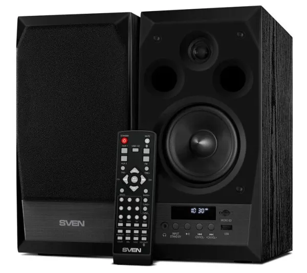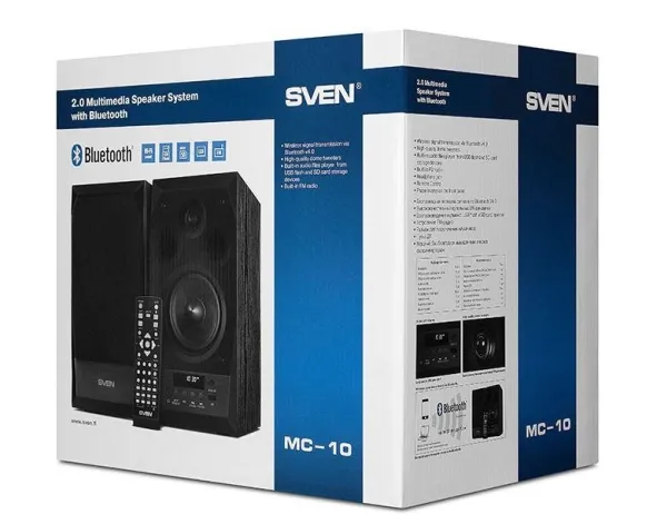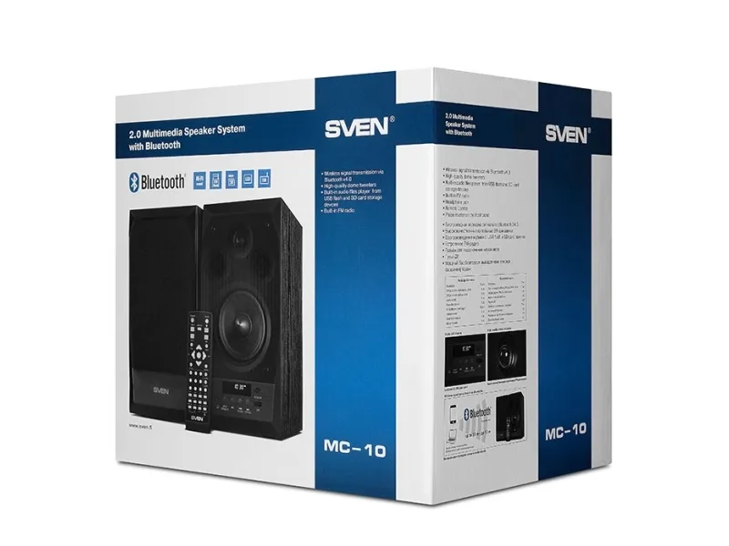 SVEN MC-10 functionality will impress anyone. It has virtually everything one may want from great speakers – a handy remote control to navigate around the tracks without coming to the speakers, a built-in radio, an informative display, the option to play music from SD cards and USB flash drives, the Bluetooth connectivity; with Bluetooth you may play music from your smartphone, or tablet – reliable communication with mobile devices will be supported at distances up to 10 m!