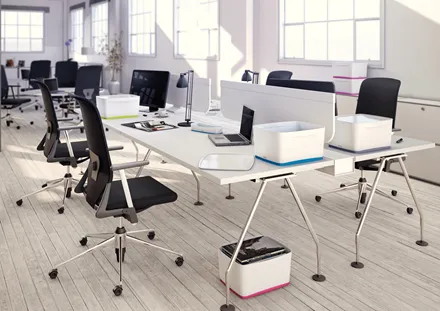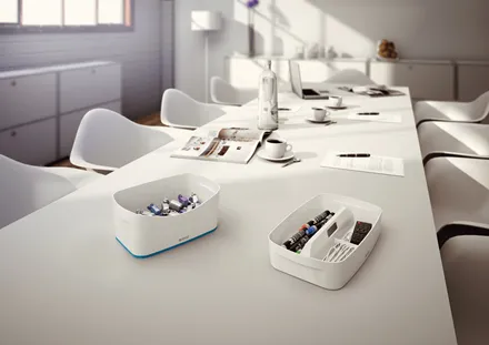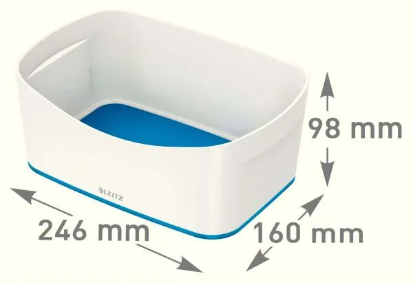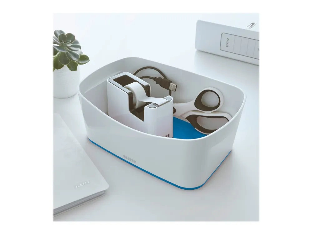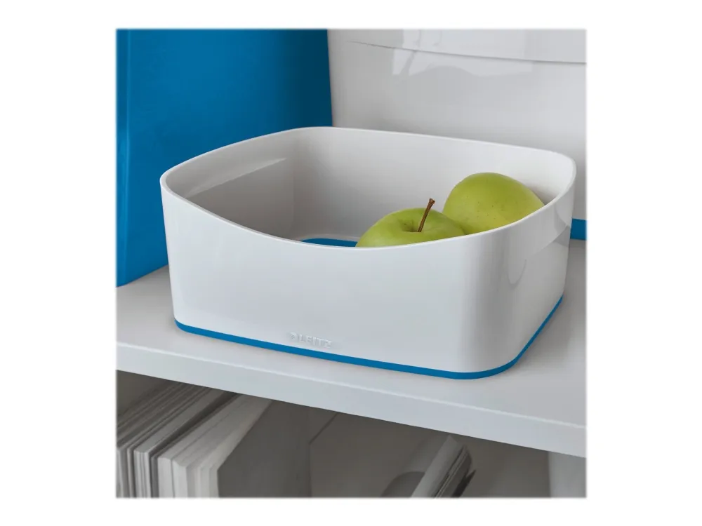 The Leitz MyBox® modular storage system lends an unique style to your home or office. The storage tray is sturdy and made of premium quality material in a high gloss finish with a dual colour effect. For quick, easy and attractive storage of A5 documents and various accessories. The modular system allows for optimal content management solutions. Complements dual colour products from the Leitz WOW range. \n\n- Stylish dual colour storage tray for quick and easy organisation and smart storage\n- Made out of sturdy, scratch-resistant and waterproof ABS material for premium look. BPA free.\n- When not being used, the boxes can be stacked inside each other to save space\n- Easy to clean, with soft rounded corners