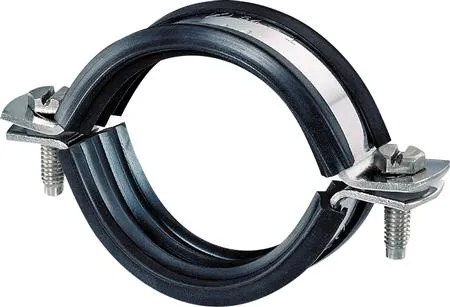 2-skrue rørbøjle i rustfrit stål 1.4401 (AISI 316), til ophæng i aggresive, korrosive miljøer. Anløbningsfarve omkring svejsningen er poleret for at forbedre korrosionsbestandighed. Lydisolerende indlæg, EPDM gummi, sort. Maks. statisk belastning (Fa,Z) 900 Newton