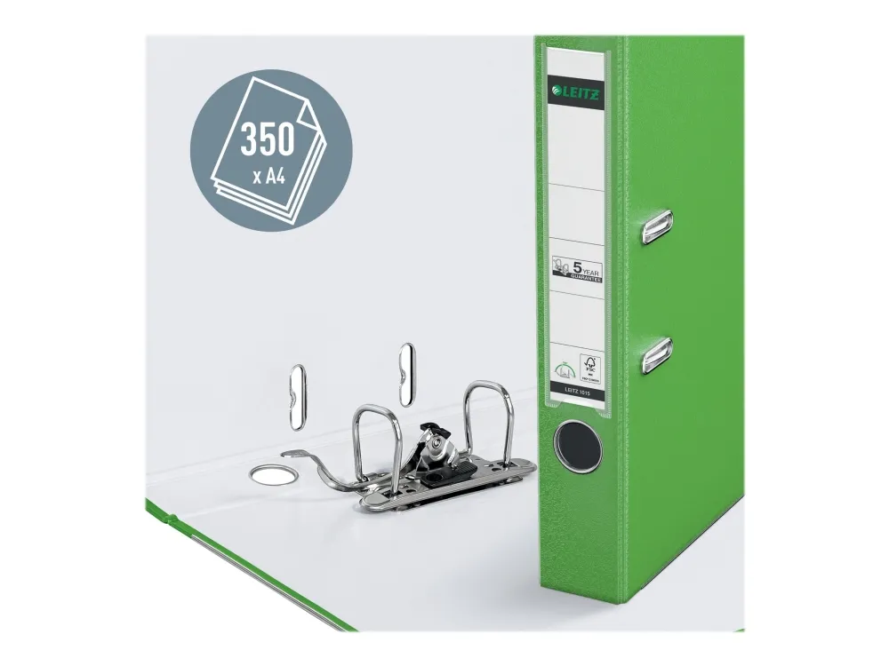 High quality lever arch file for professional office users. Durable materials and superior 180° mechanism ensure excellent performance and efficiency.\n\n- Unique patented mechanism that opens 180° for 50% wider opening and 20% faster filing\n- Highly resistent PP cover and PE laminated paper on the inside for extended durability\n- With thumbhole, rado rings and metal shoes for secure storage and user-friendly handling\n- Pocket on spine enables exchange of label for easier personalisation\n- 350 A4 sheet capacity (80 gsm)\n- 5 year guarantee on the mechanism