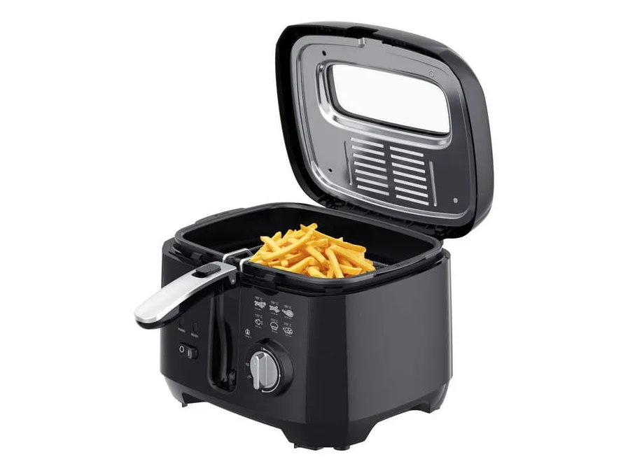 ELDOM FR18 freet. Product type: Deep fryer, Capacity: 2.5 L, Temperature (min): 150 °C. Product colour: Grey, White, Control type: Buttons, Rotary, Appliance placement: Stand-alone. Power: 1800 W, AC input voltage: 230 V, AC input frequency: 50 Hz. Weight: 2.55 kg, Package width: 305 mm, Package depth: 325 mm
