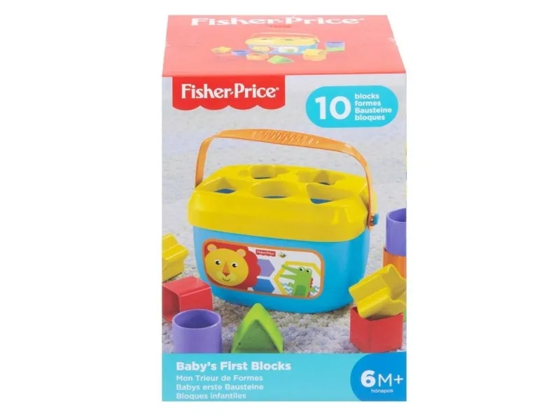 Baby's First Blocks fra Fisher-Price er en boks fylt med moro for familiens minste. Disse store, fargerike klossene introduserer barnet for farger og former når barnet sorterer, stabler og slipper klossene gjennom hullene i lokket. Tøm boksen og fortsett moroa igjen og igjen! Med det praktiske bærehåndtaket kan du ta med Baby's First Blocks når dere skal ut på tur. Når barnet griper klossene og putter dem oppi boksen gjennom riktig hull, styrkes øye-hånd-koordinasjonen og fingerferdighetene samtidig som problemløsningsevnene utvikles.