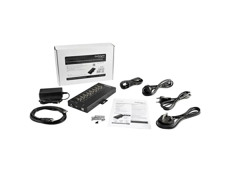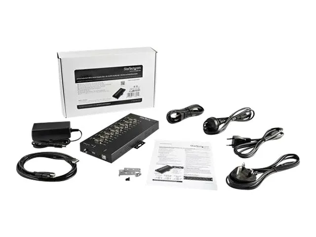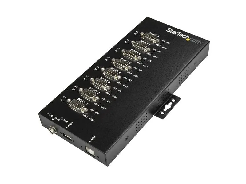 StarTech.com 8 Port Serial Hub USB to RS232/RS485/RS422 Adapter, Industrial USB 2.0 to DB9 Serial Converter Hub, IP30 Rated, Din Rail Mountable Metal Serial Hub, 15kV ESD Protection - 6ft Locking Cable Incl - seriell adapter - USB 2.0 - RS-232/422/485 x 8 - TAA-samsvar